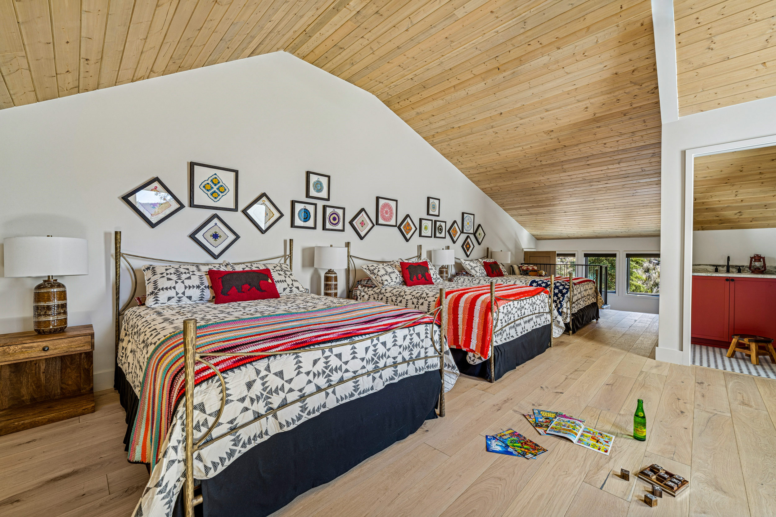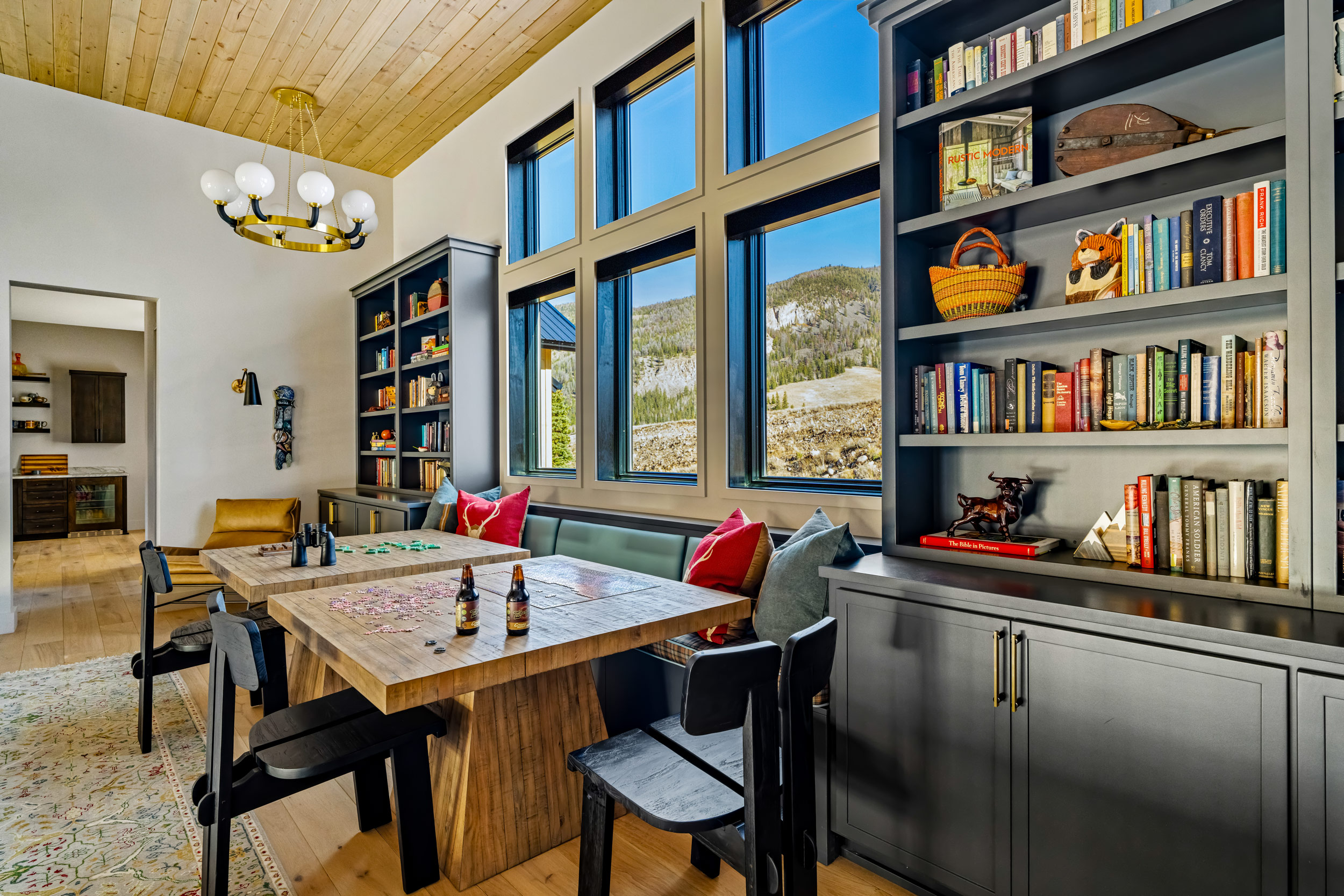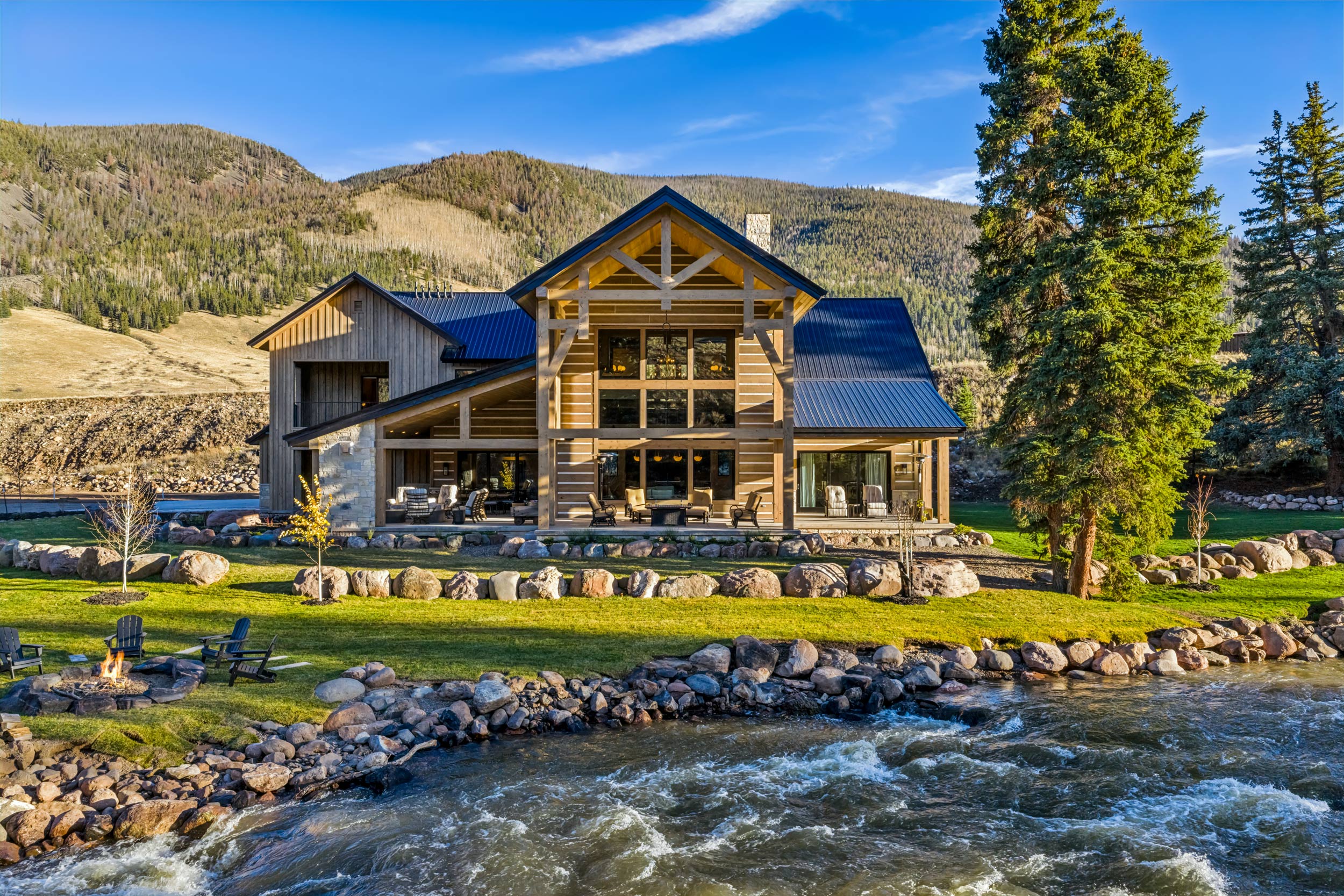 This 5,182 square foot cabin grew out of the client's love for the mountain town it sits in. This lodge sits just steps away from the banks of the Rio Grande River. It is a new construction project built on the land of an original 1930's cabin the homeowner found. We designed this house with a 40ft cathedral ceiling to take advantage of the pristine river and mountain views. It also provides ample outdoor entertaining area for the many guests that it can accommodate. It even includes an upper library for children and an underground wine cellar for the adults.